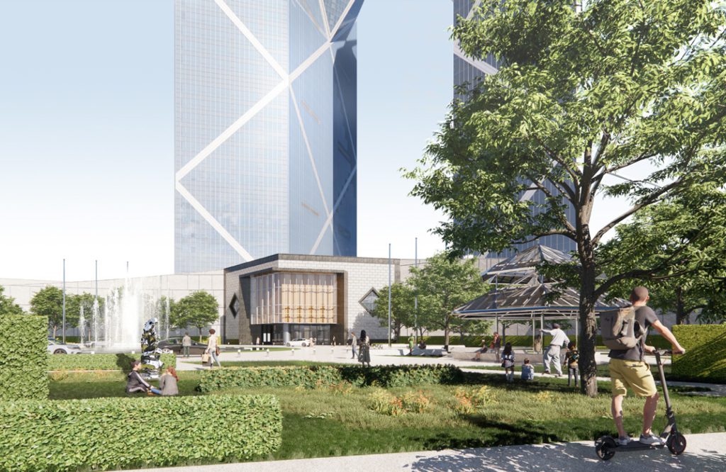 Poniżej podium zaprojektowano kompleks handlowy klasy premium, który stanowi podstawę, na której wznoszą się dwie wieże. Budynki zawierają powierzchnię biurową w standardzie technicznym klasy A i markowy 5-gwiazdkowy kompleks hotelowy na szczycie północnego wieżowca.