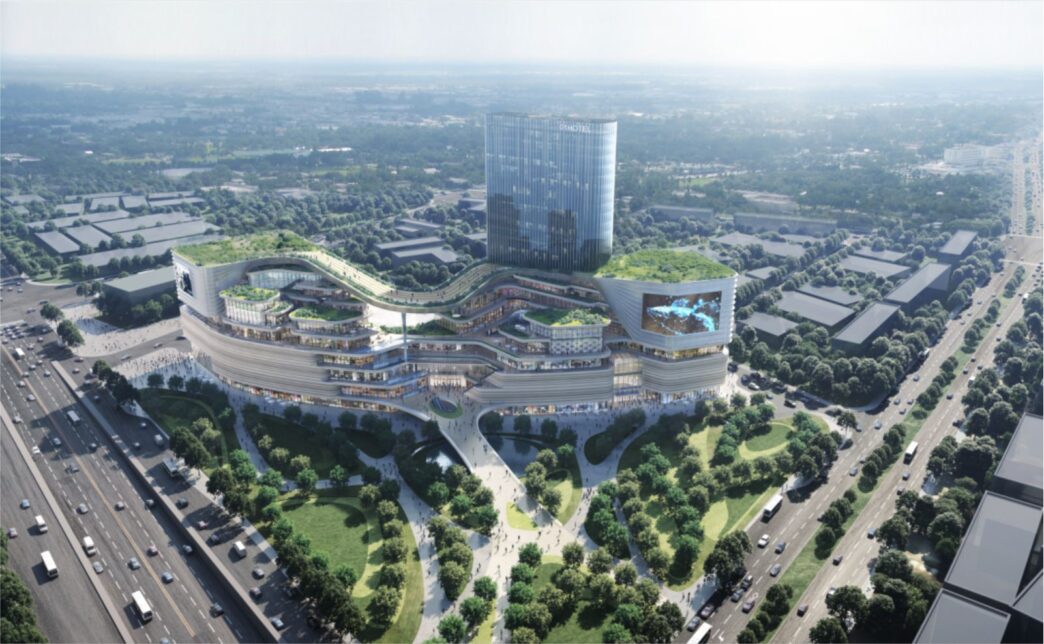 Wielofunkcyjny kompleks otoczony górami i rzekami i odzwierciedlał będzie dzielnicy Huadu w Guangzhou. Dominującym elementem całego projektu jest „pływający dach”, który stanowi także podniebny taras. Powyżej podium wznosić się będzie 100-metrowa wieża hotelowa w standardzie trzech gwiazdek. Różnorodność przestrzeni podkreśli otwarty układ z alejkami, dziedzińcami, ulicami i tarasami. Komercyjne atrium na pustym otwartym piętrze tworzy przestronną przestrzeń wspólną jako tradycyjny dziedziniec społeczny.