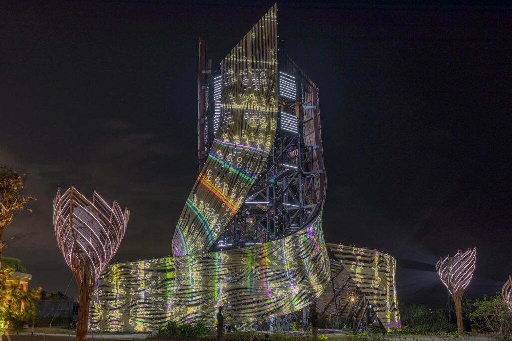 W nocy wieża będzie oświetlana pokazem świetlnym i projekcyjnym stworzonym przy użyciu sztucznej inteligencji, a opracowany przez firmę Delivered z Bali i Dubaju, która zajmuje się produkcją multimediów, pokazów świetlnych. Do zaprojektowania cyfrowej grafiki zaproszono takich artystów jak AI Pablo Alpe, Ben Helm, Maksim Ha i Aizek.