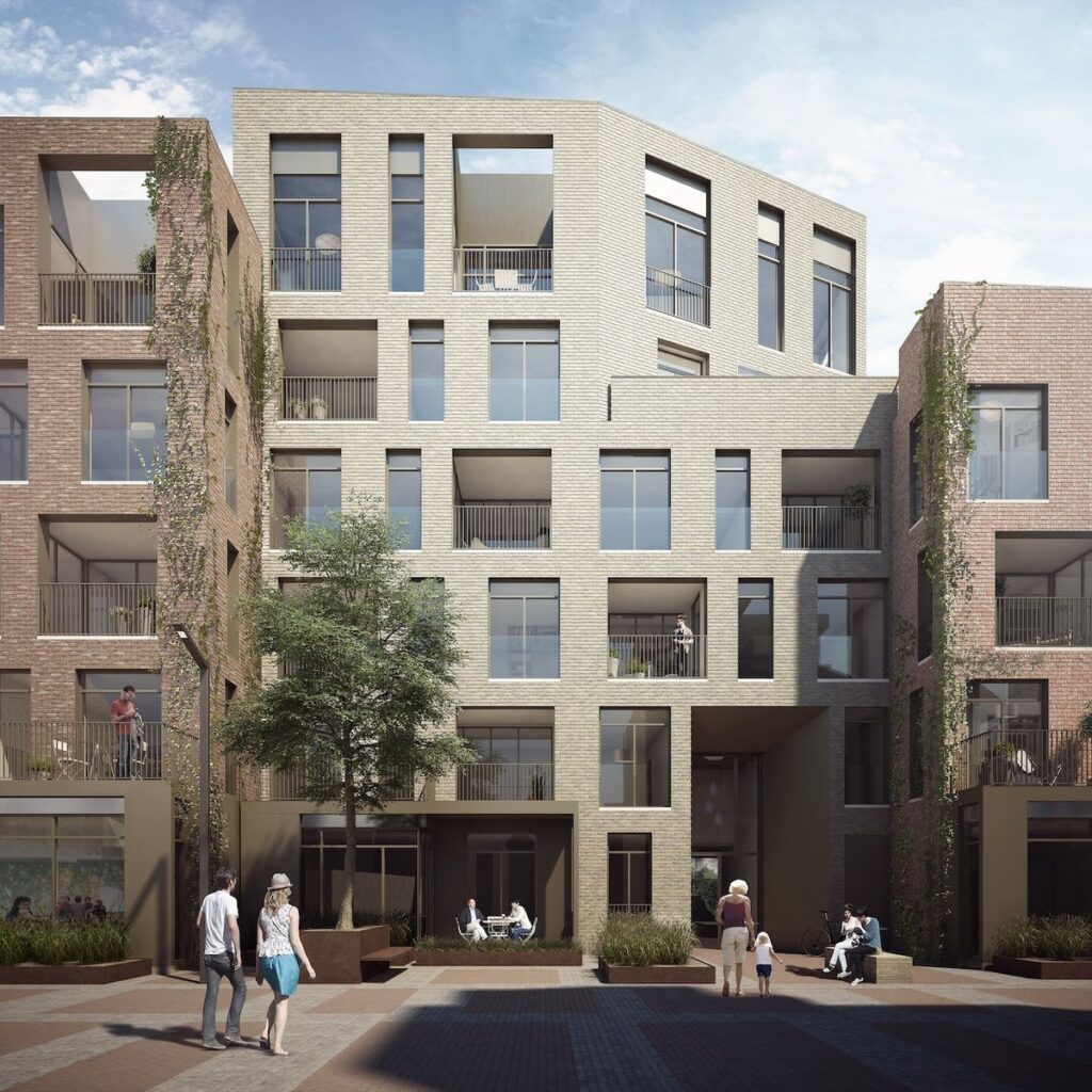 Alison Brooks Architects zaprezentowali projekt nowej inwestycji w otoczeniu centrum handlowego, parku biurowego i głównych skrzyżowań. Połącznie dwóch dzielnic Cambridge jest możliwe poprzez nowy miejski pasaż w szeregu naprzemiennych, połączonych ze sobą budynków wielorodzinnych.