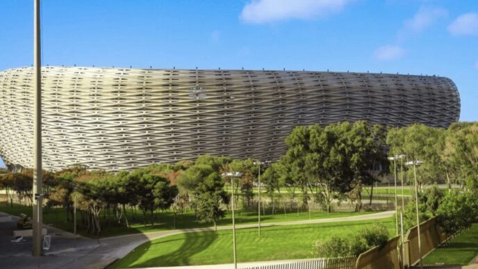 Całość zbudowana została ze szlachetnego białego betonu architektonicznego. MSN to pierwszy w Polsce i największy w Europie budynek o podwieszanej fasadzie z betonu.