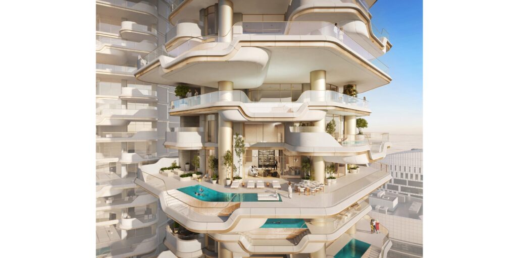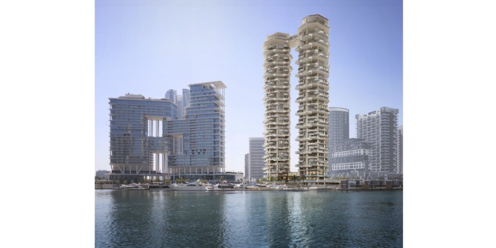 W Dubai’s Marasi Marina, Business Bay szykuje się kolejna luksusowa inwestycja apartamentowa. Dwie imponujące wieże zainspirowane kaskadowo spływającą wodą wniosą wyjątkowy wkład w panoramę miasta i nabrzeża, z sześćdziesięcioma połączonymi ze sobą apartamentami i schodkowymi tarasami.
