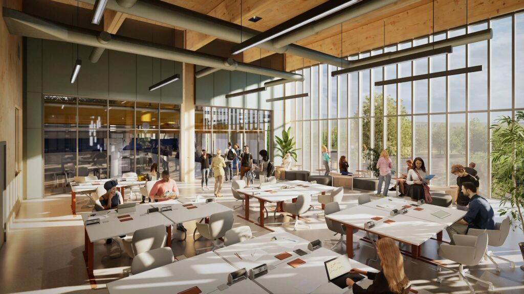 „[Budynek GEM] został zaprojektowany jako punkt węzłowy dla kampusu Uniwersytetu Maine i centrum przywracania produkcji do dyskursu akademickiego” – powiedział Mark Rhoads, dyrektor Grimshaw New York.