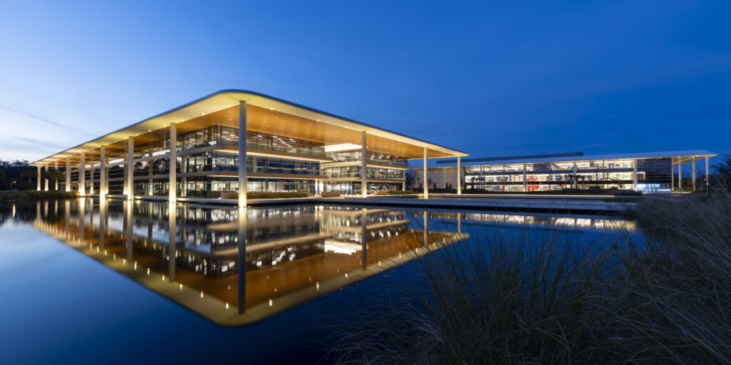 Nigel Dancey, Head of Studio, Foster + Partners, powiedział: „PGA TOUR Studios ma silny związek wizualny i przestrzenny z siedzibą główną – ze spektakularnym zagospodarowaniem terenu i rozległym jeziorem łączącym oba budynki. Nowe, najnowocześniejsze studio zostało elastycznie zaprojektowane, aby dostosować się do przyszłego rozwoju firmy i stale zmieniającego się krajobrazu medialnego”.