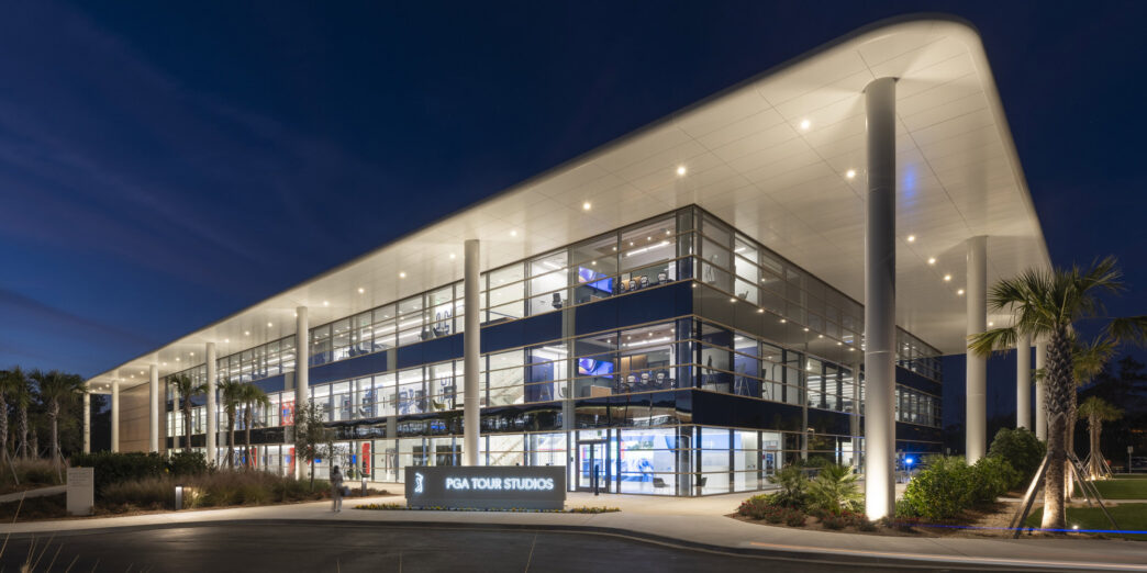 Nigel Dancey, Head of Studio, Foster + Partners, powiedział: „PGA TOUR Studios ma silny związek wizualny i przestrzenny z siedzibą główną – ze spektakularnym zagospodarowaniem terenu i rozległym jeziorem łączącym oba budynki. Nowe, najnowocześniejsze studio zostało elastycznie zaprojektowane, aby dostosować się do przyszłego rozwoju firmy i stale zmieniającego się krajobrazu medialnego”.