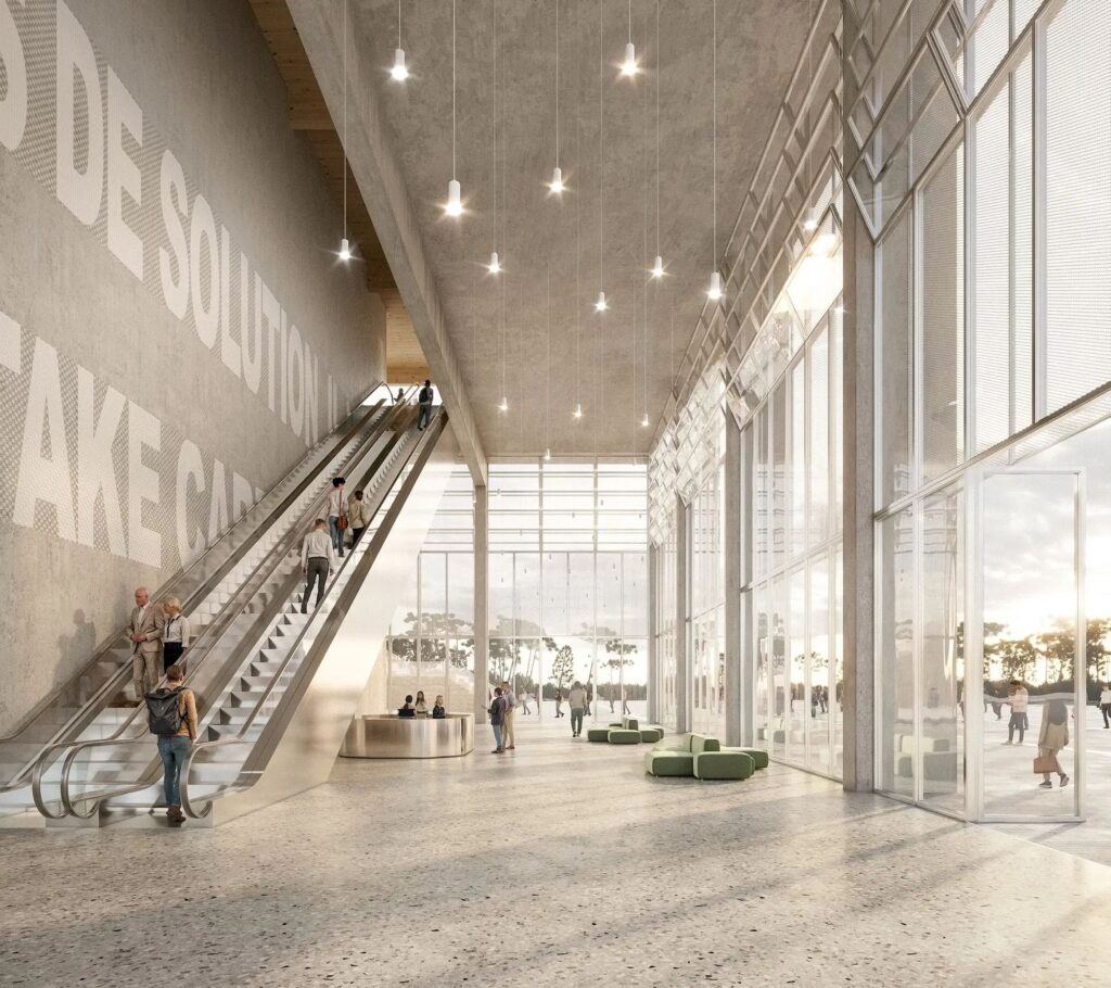 Wewnętrzna hala turbin zostanie połączona z pozostałym terenem za pomocą poprzecznych cięć w jego strukturalnej powłoce, tworząc bezpośrednie punkty dostępu i wyraźne linie widokowe dostosowane do osi Barcelona-Badalona, która definiuje obszar przemysłowy Besòs o powierzchni 22 akrów.