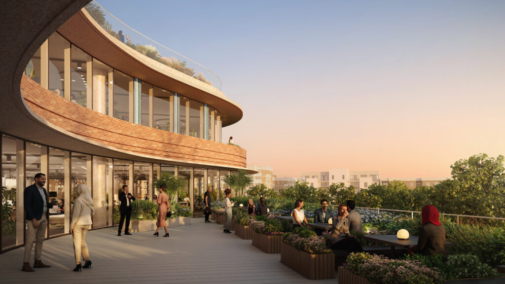 W ramach inwestycji powstanie również 3 700 m² tarasów rozmieszczonych na różnych poziomach budynków, przeznaczonych zarówno do użytku prywatnego, jak i wspólnego. Takie rozwiązanie ma sprzyjać integracji społecznej, wzmacniać relacje między użytkownikami i promować zdrowy styl życia w miejscu pracy.