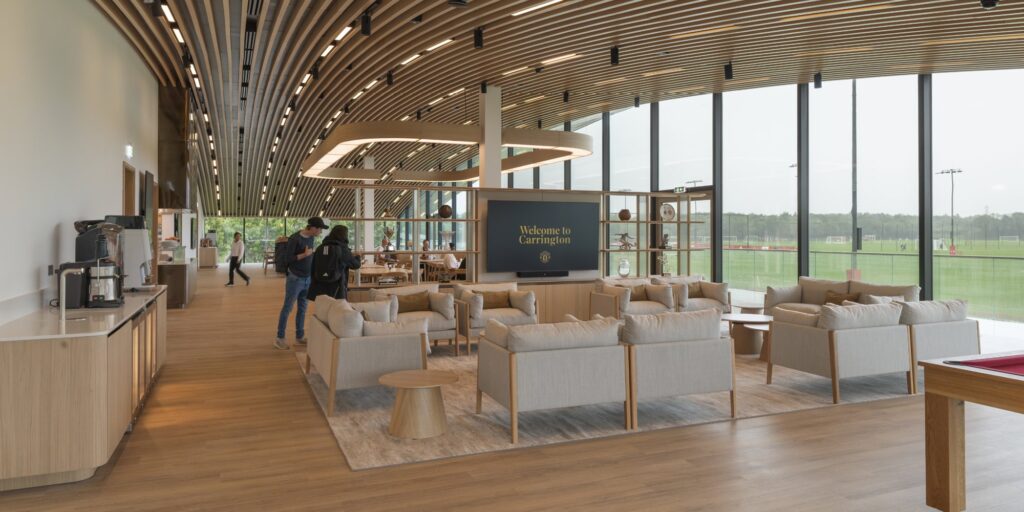 Górny poziom przeznaczono dla mediów – znalazła się tam sala konferencyjna oraz w pełni wyposażone studio do realizacji materiałów wideo i telewizyjnych. Spiralne schody, nowa organizacja stref i zastosowanie innowacyjnych rozwiązań czynią z odnowionego Carrington nowoczesny ośrodek, w którym sportowa tradycja spotyka się z technologiczną precyzją.