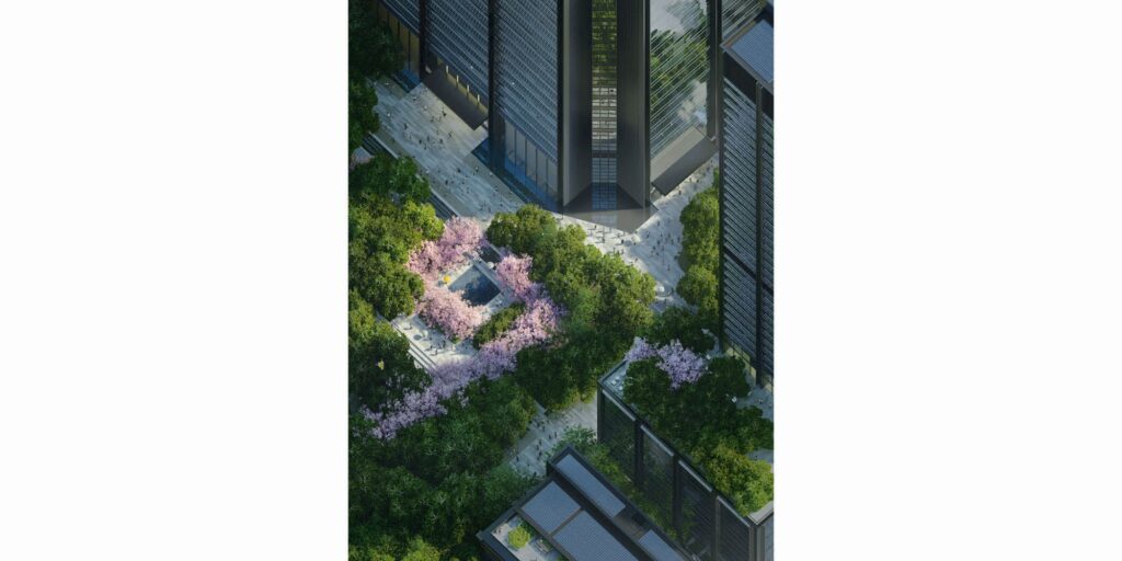 Wieżowiec biurowy zapewni elastyczną przestrzeń pracy dzięki konstrukcji umożliwiającej rozpiętość bez kolumn do 18 metrów, a na jego dachu powstanie ogród z widokiem na miasto. Pawilon turystyczny z tarasem dostępnym bez barier architektonicznych zaoferuje otwartą przestrzeń widokową na nowo ukształtowany park.