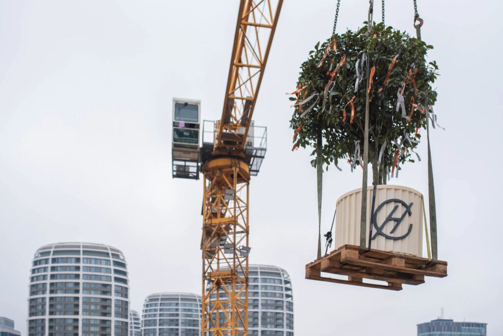 Podczas ceremonii wiechy na budynku umieszczono żywe drzewo, które po zakończeniu inwestycji trafi na jeden z zielonych tarasów. Jest to pierwszy stały element zieleni przewidziany w projekcie i jednocześnie symbol podejścia do zrównoważonego rozwoju. Drzewo umieszczono w specjalnie zaprojektowanej donicy wykonanej z biodegradowalnego bioplastiku, przygotowanej przez studio Crafting Plastic.