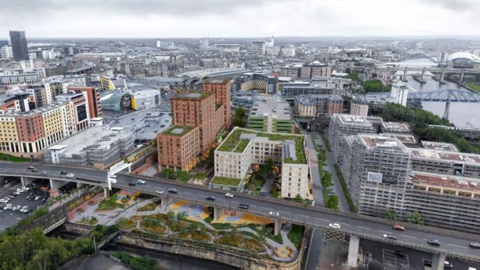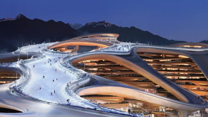Jednym z kluczowych rozwiązań technicznych jest otwierany dach oparty na konstrukcji podnoszonej, otoczony kopułą o strukturze typu diagrid. Murawa boiska została zaplanowana na wysokości około 18 metrów nad zacienioną strefą wejściową, co pozwala na lepszą wentylację i integrację przestrzeni publicznych z obiektem sportowym.