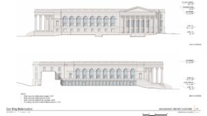 Nowa część wprowadza także usprawnienia komunikacyjne. W budynku zainstalowano trzy dodatkowe windy oraz zaprojektowano schody w atrium, które mają ułatwić przemieszczanie się między kondygnacjami. Od strony ulicy powstał publiczny plac wejściowy, porządkujący dostęp do muzeum.
