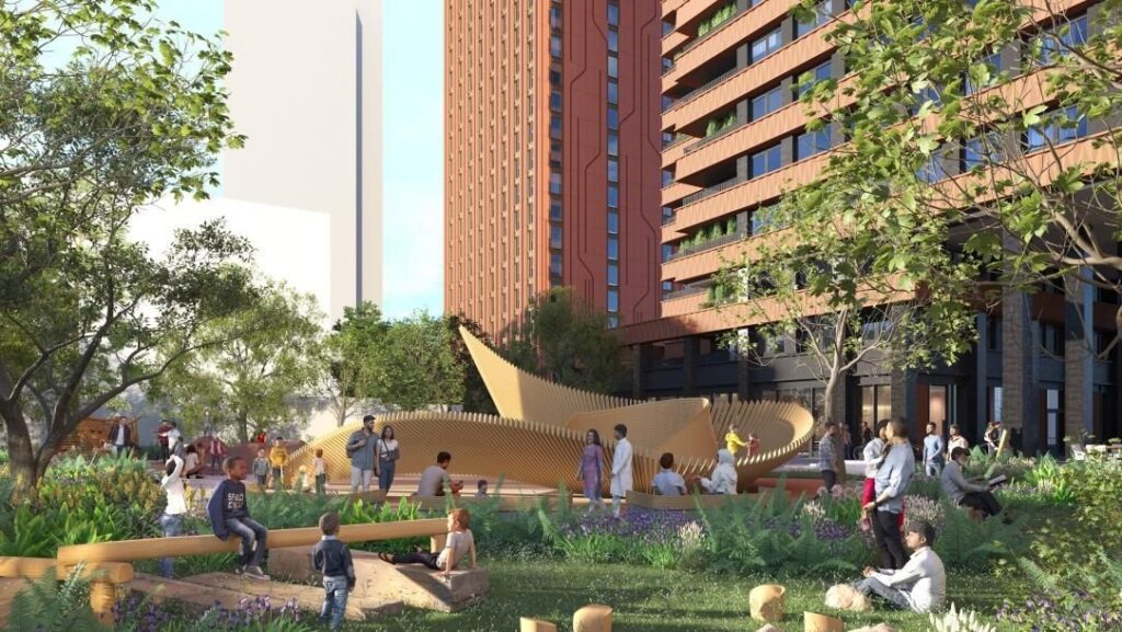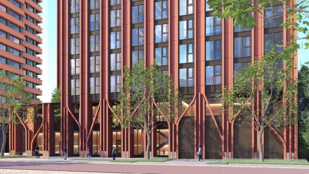 Inwestycja zakłada budowę dwóch wysokich budynków o wysokości 43 i 28 kondygnacji – wyższy będzie posiadał 843 lokale zaprojektowane w formule co-living, natomiast niższa zabudowa 153 mieszkania o charakterze bardziej tradycyjnym, przeznaczone w dużej części dla gospodarstw domowych o niższych dochodach.