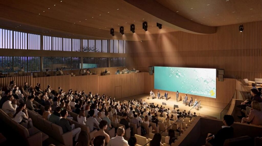 W nowym budynku AstraZeneca znajdą się przestrzenie biurowe dla ponad 700 pracowników, a także rozbudowane zaplecze konferencyjne. Projekt obejmuje centrum spotkań dla 200 osób oraz audytorium mogące pomieścić 450 uczestników.