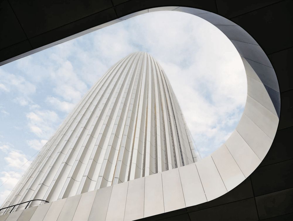 Konstrukcja opiera się na fundamentach sięgających 60 metrów w głąb gruntu. Zastosowano 104 betonowe pale, zaprojektowane z myślą o odporności na zjawiska sejsmiczne oraz ryzyko powodzi. Układ nośny wykorzystuje połączenie żelbetowego rdzenia z zewnętrzną stalową ramą, co pozwala na efektywne przenoszenie obciążeń poziomych.
